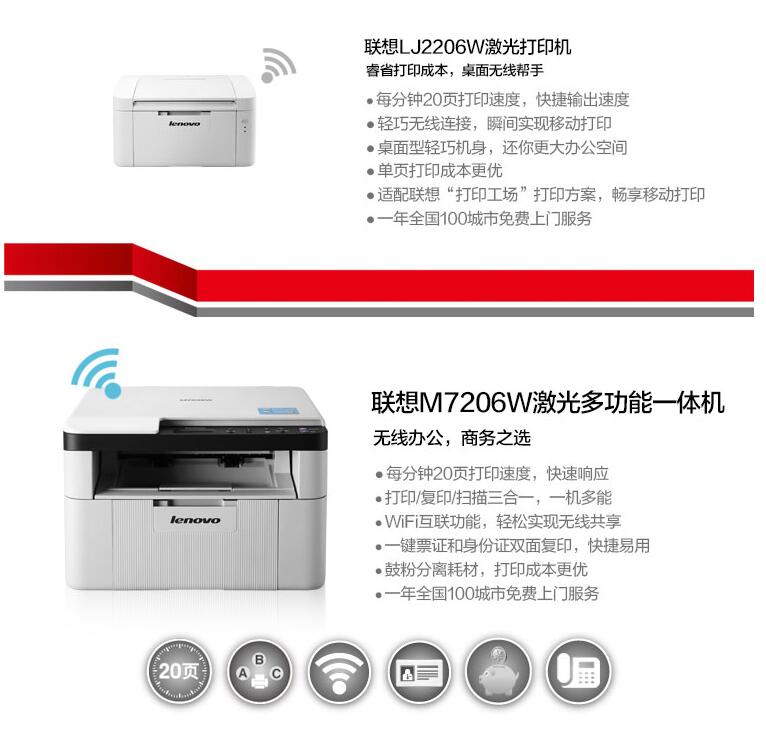 聯(lián)想M7206WM7206黑白激光無(wú)線WiFi一體機(jī)打印機(jī)辦公家用A4黑白打字復(fù)印件